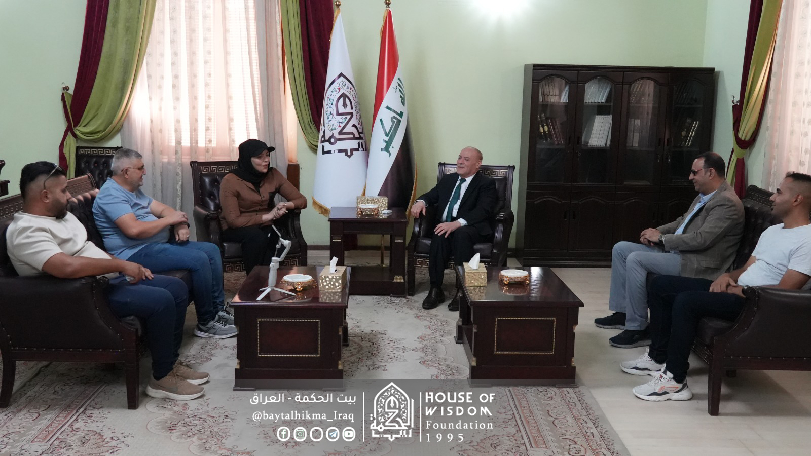 استقبل السيد رئيس مجلس أمناء بيت الحكمة الدكتور قحطان نعمة الخفاجي في مكتبه يوم الاثنين 22 أيلول 2025 فريق من لجنة إعداد ملف التراث العالمي لشريط نهر دجلة الشرقي التابع الى الهيئة العامة للآثار والتراث، بالتنسيق مع السيد مستشار بيت الحكمة الدكتور عماد جاسم سلمان.