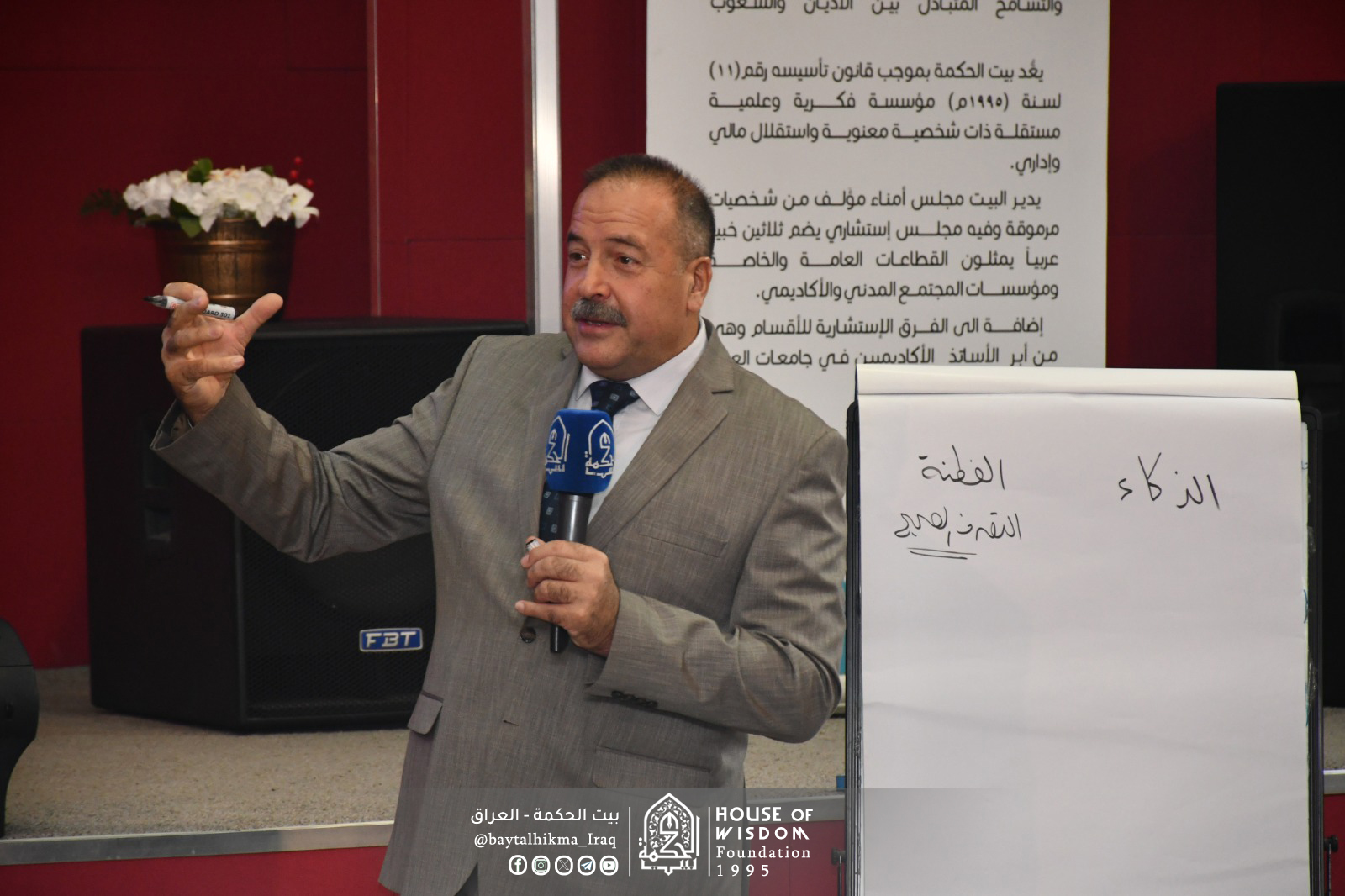 من جانبه؛ عبر السيد رئيس مجلس أمناء بيت الحكمة الدكتور قحطان نعمة حسن الخفاجي في مداخلته، عن أهمية لغة التفاهم في البيئة العملية وتأثيرها على إنتاجية الفرد، وضرورة التركيز على المحاضرات التي تهدف الى رفع الوعي الثقافي والفكري لدى الموظفين، وهو ما تحرص مؤسسة بيت الحكمة على تنفيذها من خلال برامجه العلمية