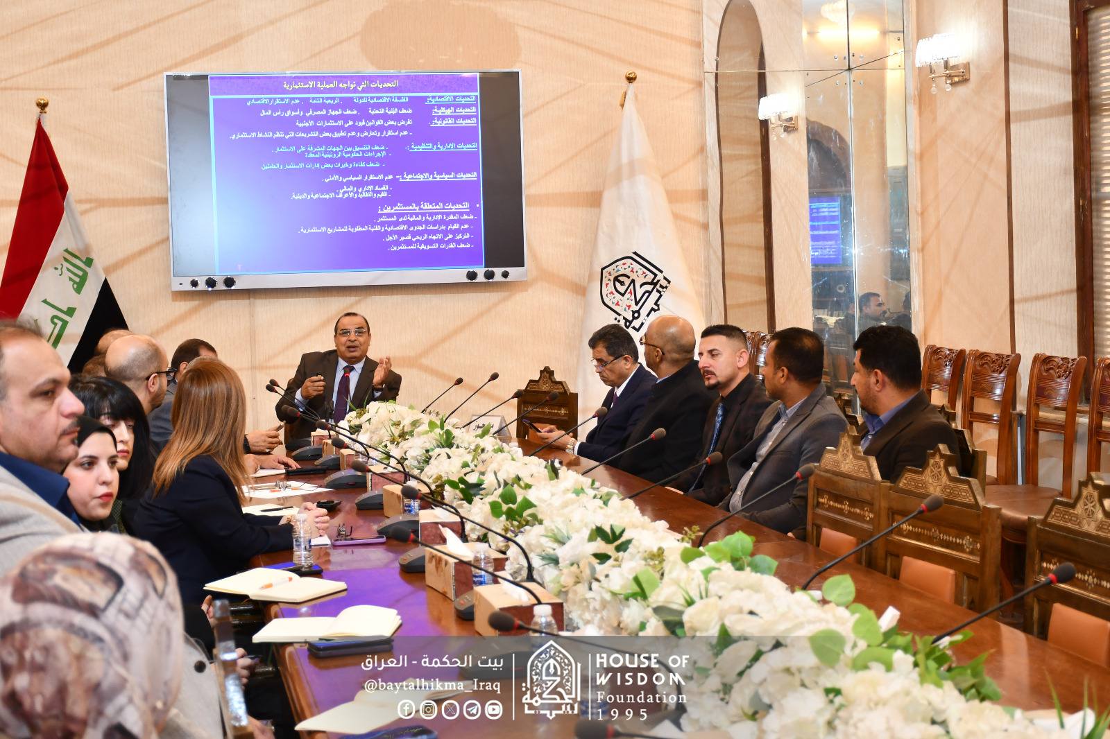 ختاماً؛ تحدث السيد رئيس مجلس الأمناء في بيت الحكمة الدكتور قحطان نعمة حسن الخفاجي عن دور بيت الحكمة في استقطاب الطاقات العلمية الكفؤة، خصوصاً تلك الشخصيات التي دائماً ما تُعطي تصورات وحلولاً لأصحاب القرار، ومساعدتهم في تشخيص المشكلات، وإصدار القرارات اللازمة لمعالجتها، موضحاً رؤية بيت الحكمة ودأبه على مناقشة الواقع الاقتصادي للعراق، والوصول إلى بيئة عمل مثالية تُلبي طموحات وتطلعات الشارع العراقي.