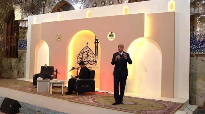 رؤية معاصرة) يوم الاثنين ٢٠٢٤/١١/٢٥. امام نخبة كبيرة من طلبة جامعة الكوفة الكلية التقنية الوسطى جابر بن حيان ضمن الموسم الثقافي لمسجد الكوفة المعظم.