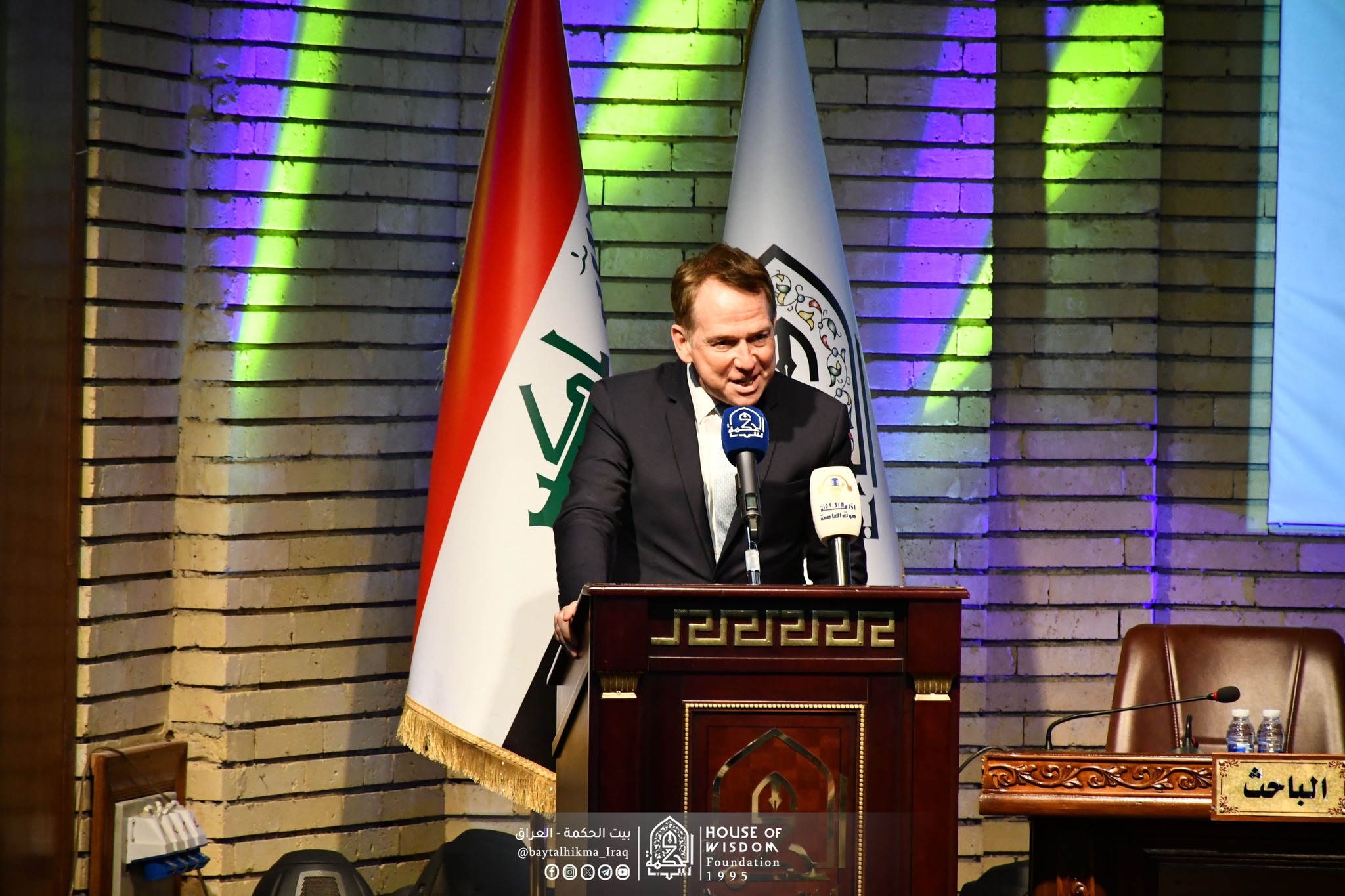 تلتها كلمة سعادة سفير جمهورية فرنسا في العراق، السيد باتريك دوريل، ثمَّن فيها دور مؤسسة بيت الحكمة في مجال التبادل الثقافي والأكاديمي من خلال توأمة الباحثين مع نظرائهم في المحافل والمؤتمرات العلمية والثقافية، مؤكدًا ضرورة تعزيز وتنمية العلاقات العراقية-الفرنسية، وفتح آفاق تعاون واسعة، خاصة في الجانب العلمي والثقافي.