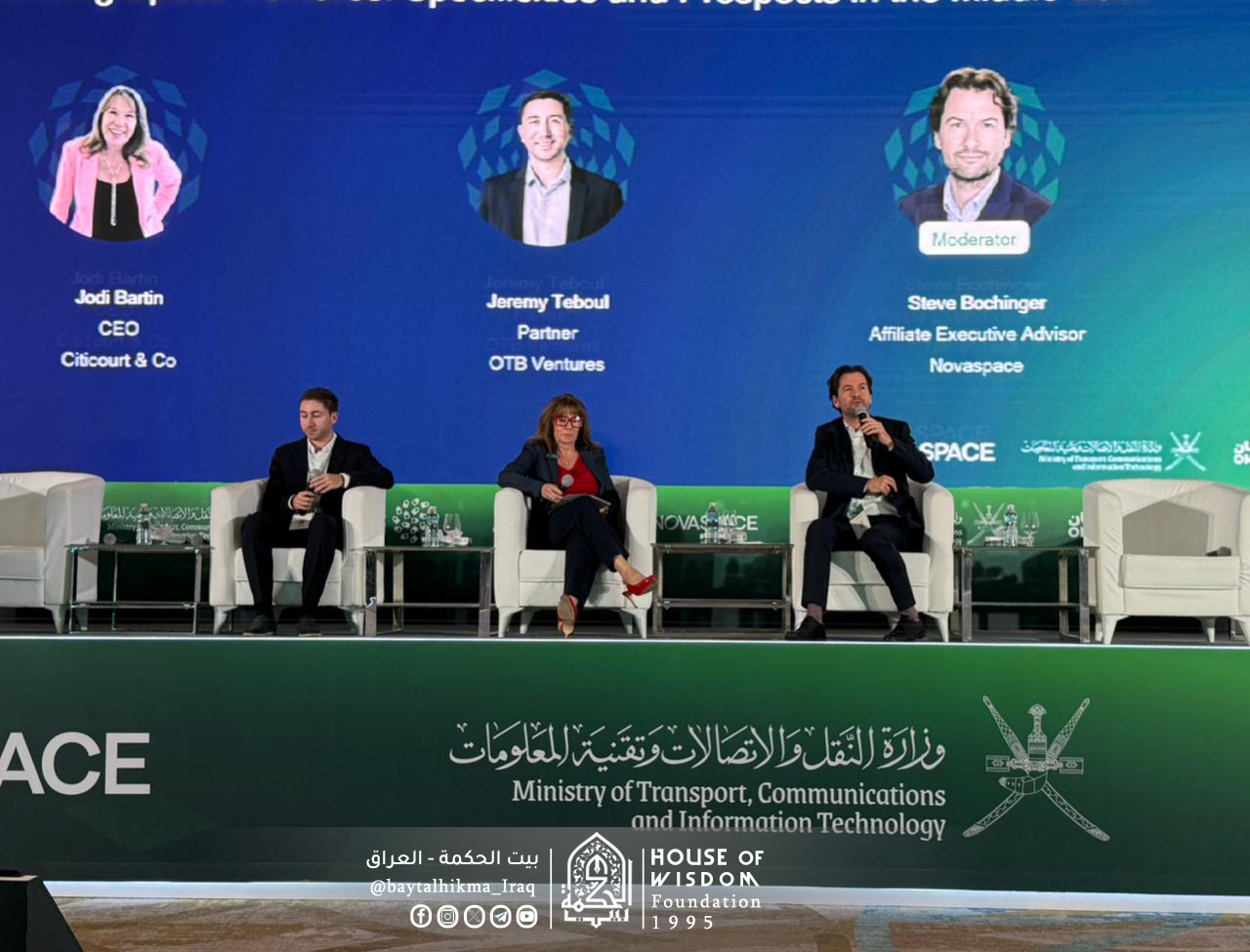 شارك السيد رئيس مجلس أمناء بيت الحكمة، الدكتور قحطان نعمة حسن الخفاجي؛ ممثلاً عن جمهورية العراق، برفقة الدكتور قيس عدنان المستشار الثقافي في مجلس النواب، والدكتور زيد فرهود من مستشارية الأمن القومي، والكابتن الطيار فريد عبد الزهرة رئيس مؤسسة كابتن فريد لعلوم الفضاء؛ في أعمال النسخة الثانية لـ "مؤتمر الشرق الأوسط للفضاء"، واجتماع المجموعة العربية للتعاون الفضائي، الذي تستضيفه سلطنة عُمان ممثلةً بوزارة النقل والاتصالات وتقنية المعلومات، في مركز عُمان للمؤتمرات والمعارض، للمدة من 26 إلى 28 كانون الثاني 2026. وجاءت هذه المشاركة بحضور دولي واسع ضمَّ خبراء وقادة تنفيذيين من الوكالات الحكومية وشركات القطاع الخاص، إلى جانب متحدثين متخصصين وصُنّاع قرار في قطاع الفضاء.