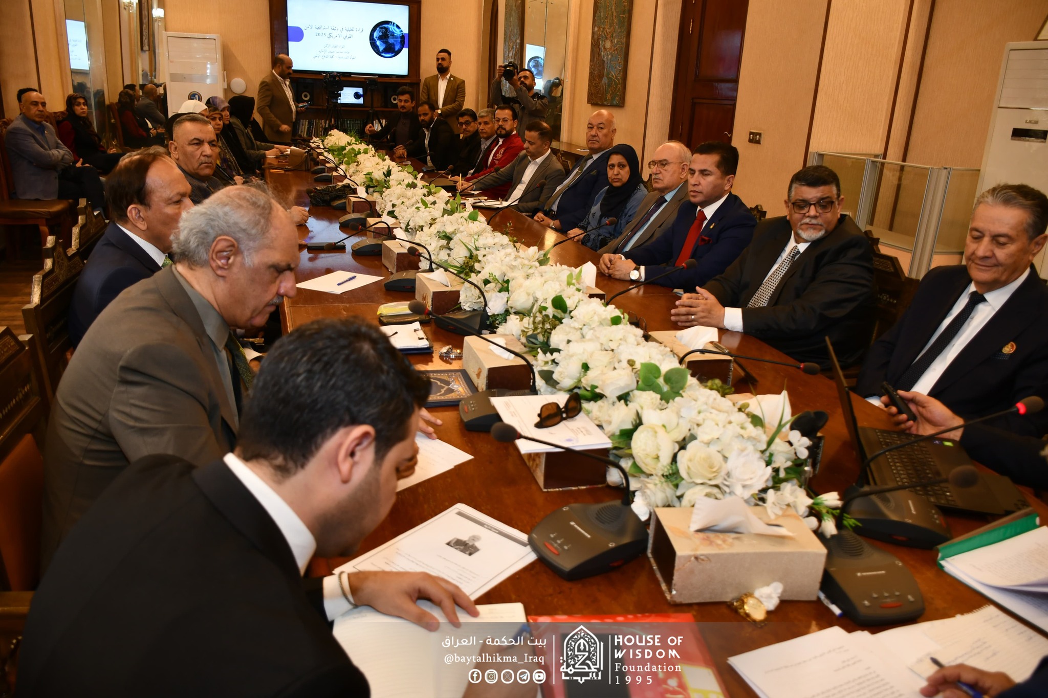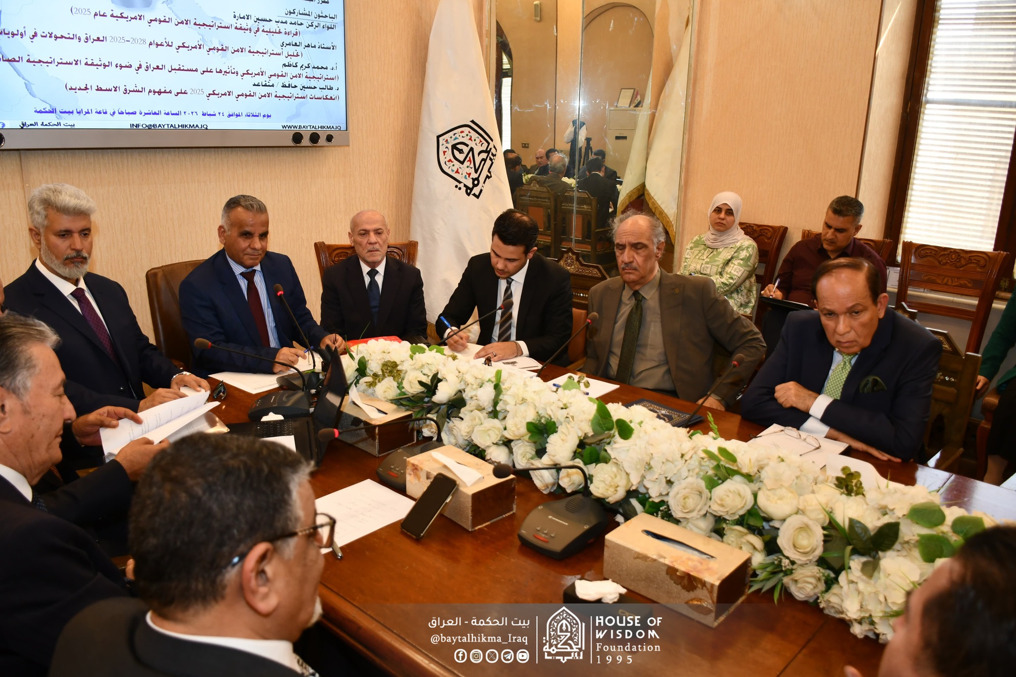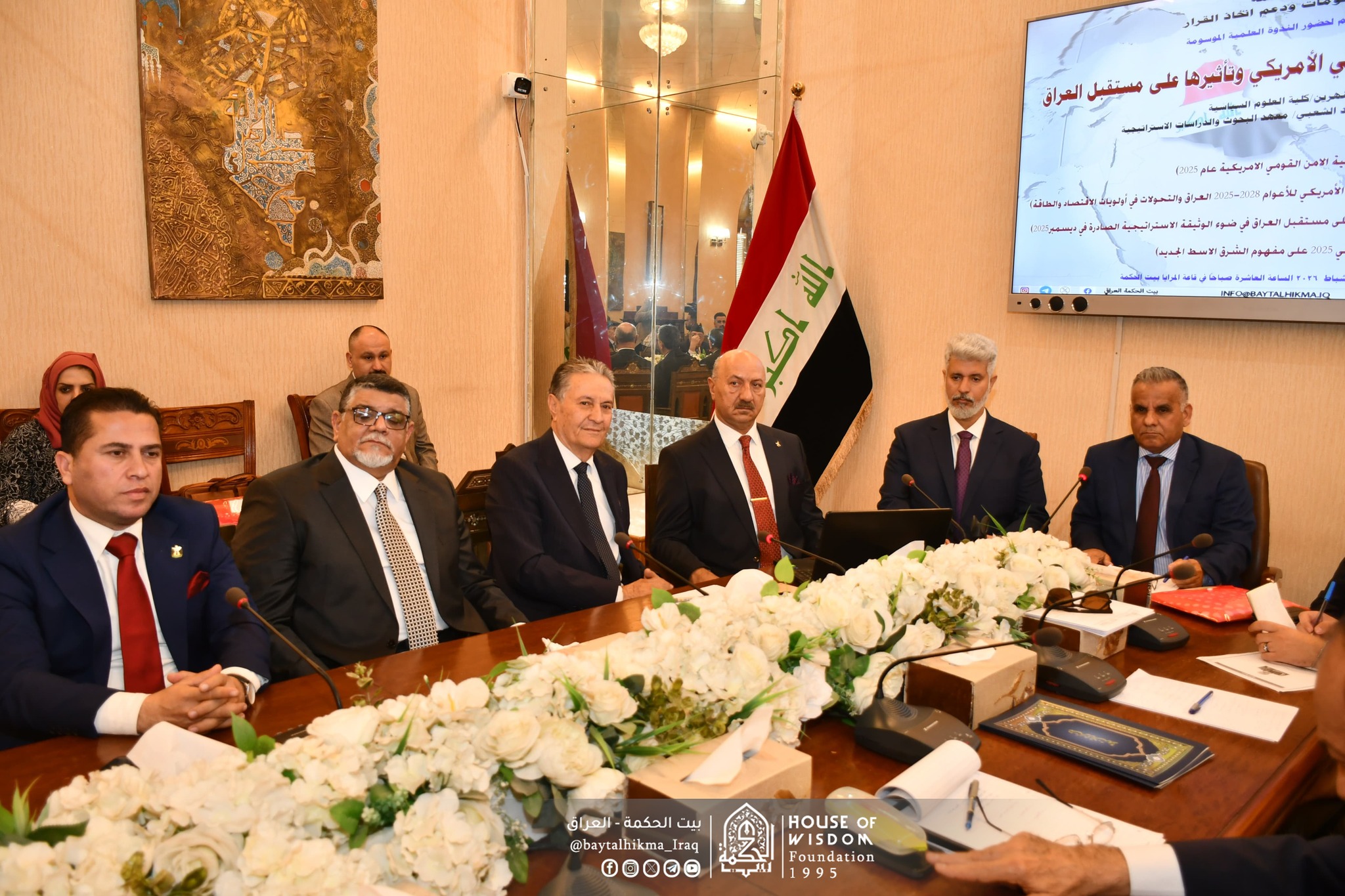 اقام بيت الحكمة- مركز المعلومات ودعم اتخاذ القرار ندوته العلمية التي حملت عنوان ( استراتيجية الأمن القومي الأمريكي وتأثيرها على مستقبل العراق )،يوم الثلاثاء 24 شباط 2026 على قاعة المرايا في بيت الحكمة. بحضور السيد رئيس مجلس أمناء بيت الحكمة الدكتور قحطان نعمة حسن الخفاجي .