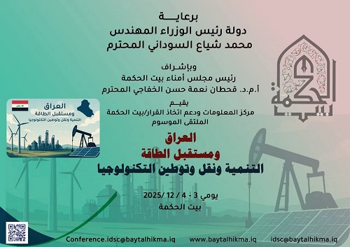 Ethics and its philosophy in the Arab and Islamic worldsEducation, Work, and Building Active Citizenship: Present Challenges and Future ProspectsIraq and the future of energy: development, technology transfer, and localizationThe role of religious, scientific, and educational institutions in preserving national unity and developing moral valuesSocial factors influencing violence against childrenThe Blessed Prophetic Biography... Between Quranic Constants and Scientific Methodological VariablesThe reality of agricultural security and livestock production in Iraq and ways to develop itCharacteristics of children's literature language in the age of superintelligenceHouse of Wisdom strengthens cooperation mechanisms with the Iraqi ParliamentThe electoral system in Iraq and its role in consolidating the democratic experiencePeriodic meeting of the Board of Trustees of Beit Al-HikmaEarly detection of breast cancer… Your strength lies in your awareness, as part of Pink October activitiesEmotional intelligence and its role in managing work stressThe cultural heritage of Baghdad throughout historyThe role of research centers and think tanks in combating extremism and terrorismHouse of Wisdom organizes a workshop to boost confidence among members of the community.Celebrating the scientific achievements of history professorsThe Language: Our Gateway to the OtherPhilosophy and Artificial Intelligence: The Problem of Epistemic and Ethical ValueAn educational lecture with the seasonal influenza vaccination campaignEnglish Language Training Course - Level 1Chairman of the Board of Trustees of the House of WisdomConstitutional Powers Between the Federal Authority and the Kurdistan RegionHajj Commission and Prospects for Scientific CooperationThe Identity of the Muslim Woman Between Tradition and Modernity – A Qur’anic Study Bayt al-Hikma –Heritage Building Rehabilitation ProjectSmart agriculture and its role in enhancing food securityThe Second Conference on Legal Aid LawRegular meeting of the Board of Trustees of the House of WisdomClimate change and its impact on Iraq.His Excellency the Ambassador of the State of Palestine to IraqIraqi National DayCombating extremism within institutionsHis Excellency the Ambassador of the United Kingdom to IraqIraq: State and Society over a CenturyCommunity Memory and Its Role in Building National UnityWisdom, in the thought of Sheikh Ahmed Al-WailiWomen in Islamic Thought: A Vision on Cultural PatternsA delegation from the French Institute for the Near EastLanguage and Meaning in Linguistic and Philosophical ApproachesFoundations for Stimulating the Emerging EconomyHis Excellency the Ambassador of the Tunisian Republic in BaghdadIraqi Investment ForumLaunch of the Iraqi Scientific Academy ConferenceA delegation from the Culture and Science Complex in the Sultanate of OmanRespect and acceptance of differences in the field of human rightsRegular meeting of the Board of Trustees of the House of WisdomThe President of the House of Wisdom continues his support for the institution's administrative and academic staff.Preparations for the inclusion of the House of Wisdom on the World Heritage ListThe Role of Artificial Intelligence and Its Impact on Politics and Strategy