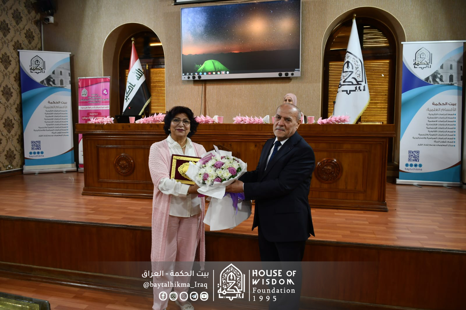 في ختام الفعالية، قام السيد رئيس مجلس أمناء بيت الحكمة، الدكتور قحطان نعمة حسن الخفاجي، بتكريم السيدة المحاضرة، معبراً عن تقديره لجهودها في تعزيز الأنشطة الثقافية والاجتماعية. وأكدّ أن المرأة تؤدي دوراً أساسياً في المسيرة الفكرية والإنسانية لبيت الحكمة. كما أشاد بمبادرة قسم شؤون المرأة في تنظيم المحاضرات التوعوية، والتي تعكس وعي المؤسسة بمسؤولياتها تجاه قضايا المجتمع، خصوصاً فيما يتعلق بصحة المرأة وتمكينها من مواجهة التحديات بثقة ووعي.
