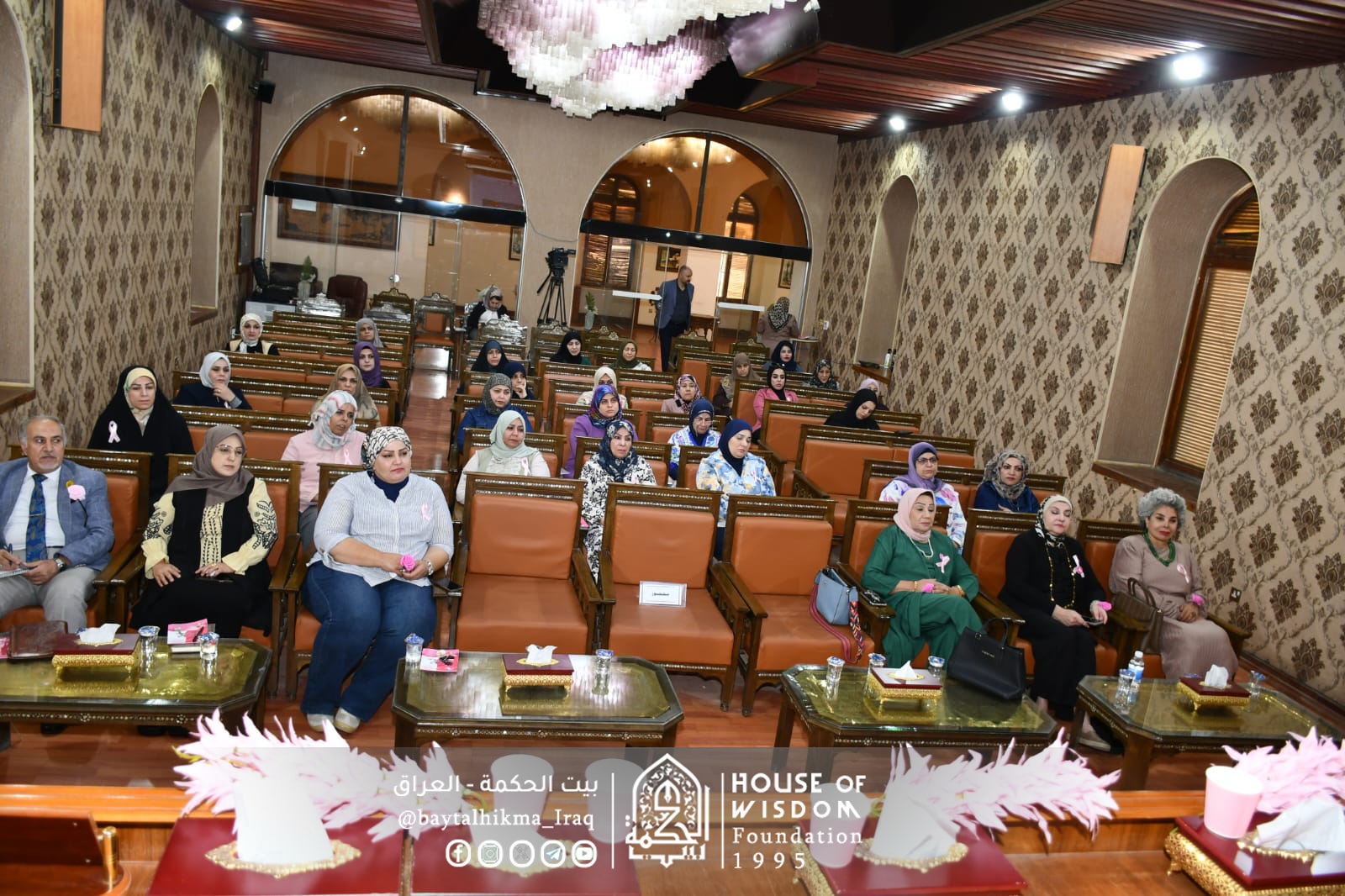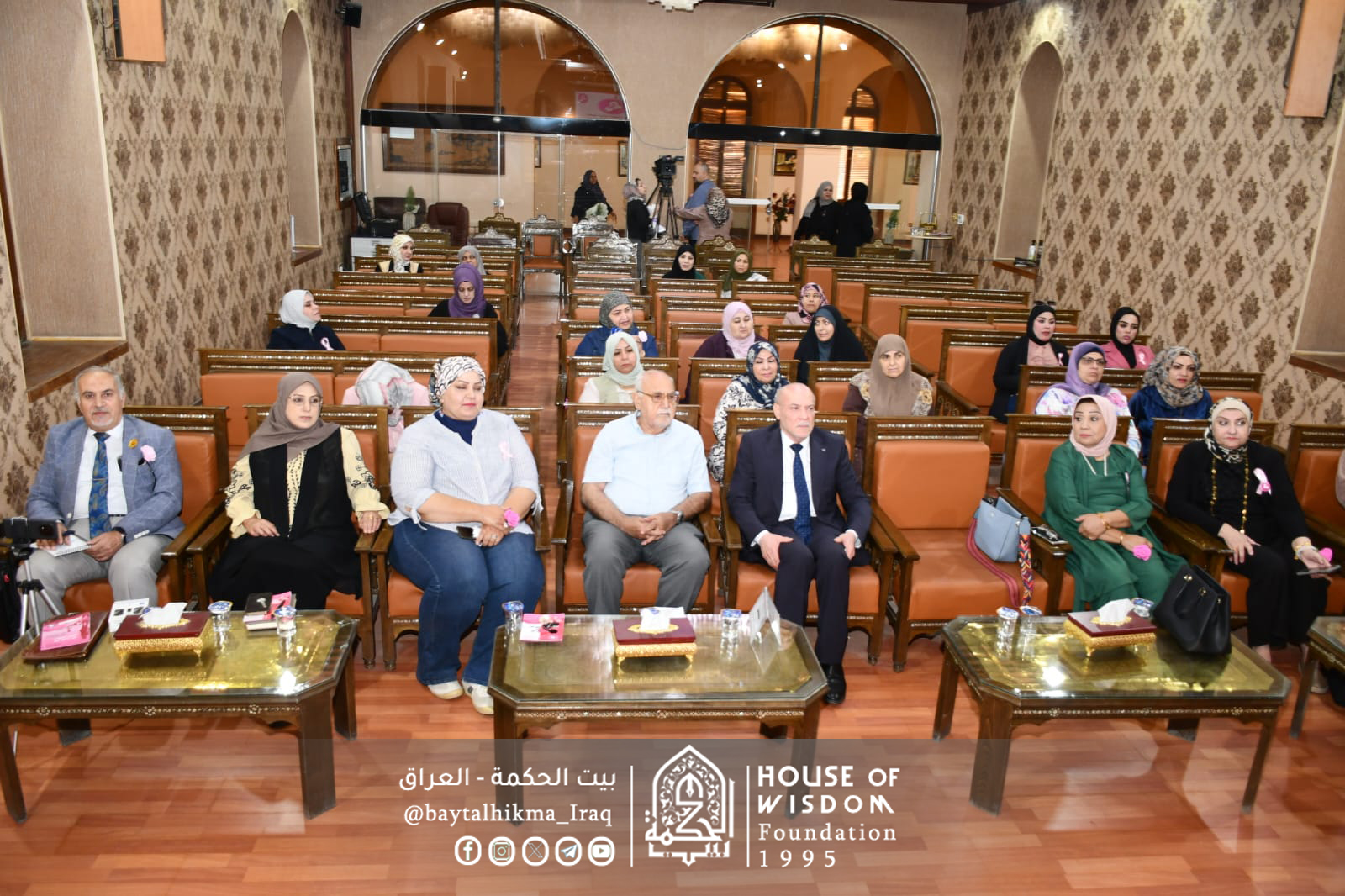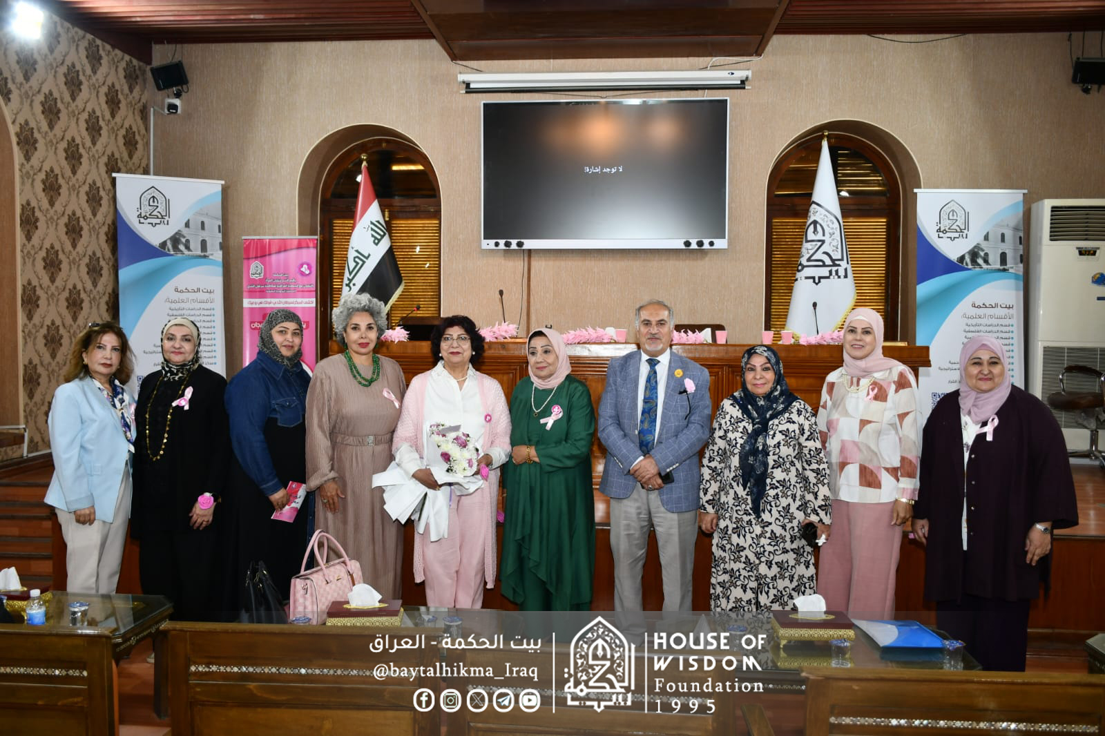في إطار فعاليات أكتوبر الوردي، الشهر العالمي للتوعية بسرطان الثدي، نظّم بيت الحكمة - قسم شؤون المرأة، بالتعاون مع الجمعية العراقية لمكافحة سرطان الثدي، محاضرة توعوية بعنوان (الكشف المبكر لسرطان الثدي: قوتكِ في وعيكِ)، يوم الأربعاء 29 تشرين الأول 2025، على قاعة الدكتور محمود علي الداود في بيت الحكمة.