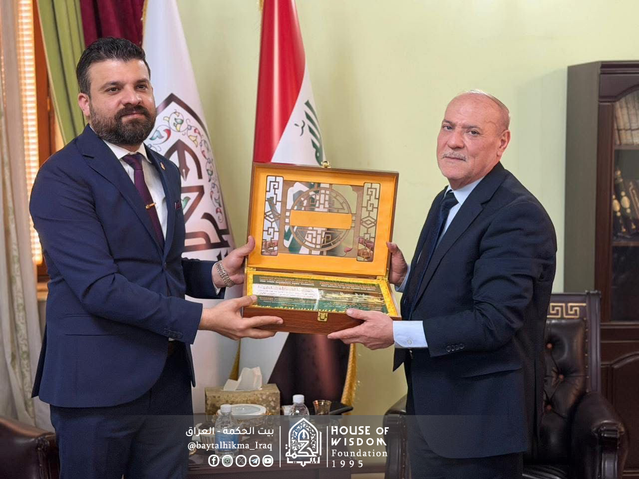 استقبل السيد رئيس مجلس الأمناء الدكتور قحطان نعمة حسن الخفاجي ،في مكتبه ببيت الحكمة ،السيد مدير عام الهيئة العامة للكمارك العراقية الدكتور ثامر قاسم داود، لبحث آفاق التعاون المشترك بين المؤسستين في مجال توثيق وإحياء التراث الكمركي العراقي ، وذلك يوم الأربعاء 5 تشرين الثاني 2025 .