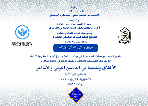 Planning for higher education in Iraq and the needs of the state and societyEthics and its philosophy in the Arab and Islamic worldsShaykh Abdul-Karim al-Zanjani and the Pioneering of Philosophical Studies in Iraq *Anti-Violence Against Women and Its Social and Psychological Effects* Iraq and the Future of Energy... Development, Technology Transfer, and LocalizationThe Role of Theatre in Developing Social Awareness and Aesthetic Values in the Human PersonalityThe Impact of Social Media on Ethical Values in a Distressed Society: Iraq as a Case StudyThe Health Reality in Iraq: Enough with DrugsFoundations of the Unified Iraqi Retirement Law and Social Security RetirementHow to Build Your Career Path in a Rapidly Changing WorldThe Reality of Administrative Corruption in Iraq and the Role of the Integrity CommissionSocial factors influencing violence against childrenThe Blessed Prophetic Biography... Between Quranic Constants and Scientific Methodological VariablesThe reality of agricultural security and livestock production in Iraq and ways to develop itCharacteristics of children's literature language in the age of superintelligenceHouse of Wisdom strengthens cooperation mechanisms with the Iraqi ParliamentThe electoral system in Iraq and its role in consolidating the democratic experiencePeriodic meeting of the Board of Trustees of Beit Al-HikmaEarly detection of breast cancer… Your strength lies in your awareness, as part of Pink October activitiesEmotional intelligence and its role in managing work stressThe cultural heritage of Baghdad throughout historyThe role of research centers and think tanks in combating extremism and terrorismHouse of Wisdom organizes a workshop to boost confidence among members of the community.Celebrating the scientific achievements of history professorsThe Language: Our Gateway to the OtherPhilosophy and Artificial Intelligence: The Problem of Epistemic and Ethical ValueAn educational lecture with the seasonal influenza vaccination campaignEnglish Language Training Course - Level 1Chairman of the Board of Trustees of the House of WisdomConstitutional Powers Between the Federal Authority and the Kurdistan RegionHajj Commission and Prospects for Scientific CooperationThe Identity of the Muslim Woman Between Tradition and Modernity – A Qur’anic Study Bayt al-Hikma –Heritage Building Rehabilitation ProjectSmart agriculture and its role in enhancing food securityThe Second Conference on Legal Aid LawRegular meeting of the Board of Trustees of the House of WisdomClimate change and its impact on Iraq.His Excellency the Ambassador of the State of Palestine to IraqIraqi National DayCombating extremism within institutionsHis Excellency the Ambassador of the United Kingdom to IraqIraq: State and Society over a CenturyCommunity Memory and Its Role in Building National UnityWisdom, in the thought of Sheikh Ahmed Al-WailiWomen in Islamic Thought: A Vision on Cultural PatternsA delegation from the French Institute for the Near EastLanguage and Meaning in Linguistic and Philosophical ApproachesFoundations for Stimulating the Emerging EconomyHis Excellency the Ambassador of the Tunisian Republic in BaghdadIraqi Investment Forum