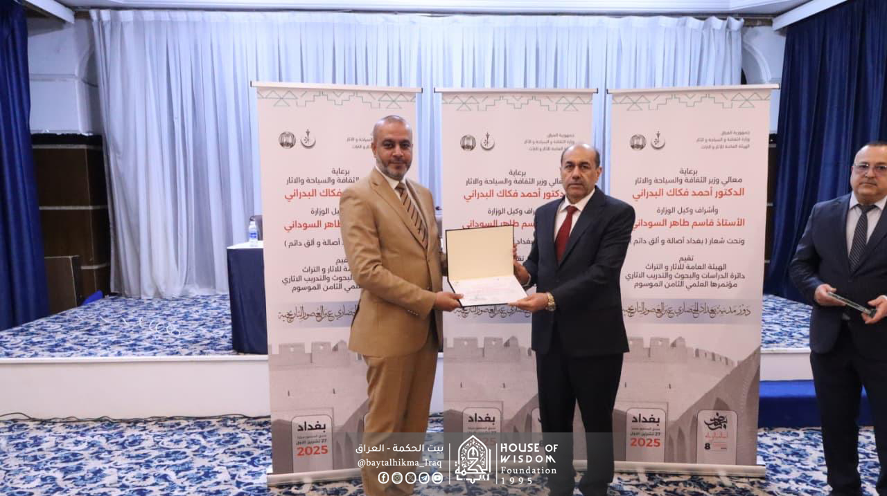 بيت الحكمة يشارك في المؤتمر العلمي الثامن لدائرة الدراسات والتدريب الآثاري