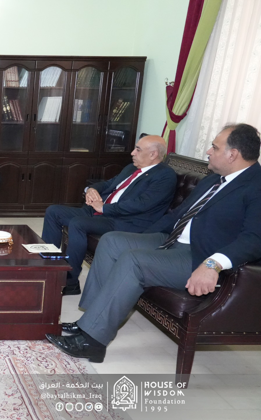 حضر اللقاء الدكتور حازم الرديني، نائب رئيس المركز الاستراتيجي لحقوق الإنسان في العراق، والسيد مدير العلاقات العامة والإعلام في بيت الحكمة، الذي رافق الوفد في جولة تعريفية بالصرح الحضاري والمبنى الأثري لبيت الحكمة، وتفقد أقسامه العلمية والإدارية.